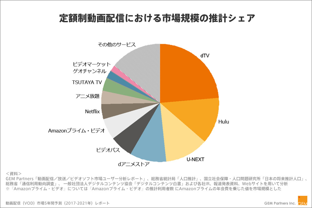 シェア第2位のHuluは日本初のVODだったため、先行者利益としてたくさんのシェアを維持していると思います。